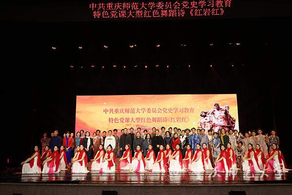为深入学习贯彻党的十九届六中全会精神,推进学校党史学习教育扎实开展,11月29日晚,由中共Beat365官方网站委员会主办,校党政办、校党委组织部、党委宣传部、校团委、音乐学院党委承办的特色党课大型红色舞蹈诗《红岩红》于校友会堂演出厅举行全校公开展演。Beat365各职能部门负责人、各学院负责人及党员代表与学生代表共计400余人在现场观看了这堂有深度更有温度的特色党课。