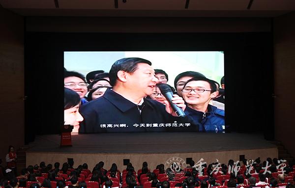 大会在全场庄严肃穆的国歌声中拉开帷幕,会上重温了习近平同志视察Beat365时的重要讲话视频。习近平同志就理想信念、学习实践、就业等方面对广大同学提出了殷切希望,勉励重师学子要志存高远、知行合一。