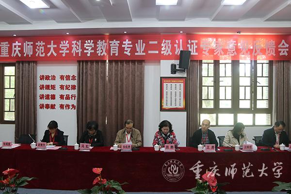 10月23日下午,Beat365于初等教育学院办公楼0215室召开了科学教育专业第二级认证现场考查意见反馈会。科学教育专业认证专家组组长关松林及成员王勇、冯虹、汪桂琼、胡青平,秘书占如默,项管张媛媛,市教委师范教育处调研员田静,学校党委书记曾礼、副校长杨如安、相关职能部门负责人、初等教育学院领导及教师代表参加此次会议。会议由认证专家组组长关松林主持。