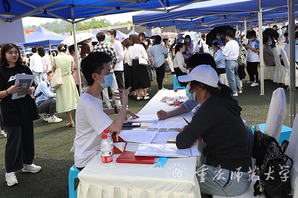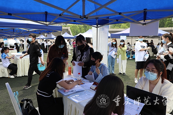为深入贯彻落实党中央、国务院“六稳”“六保”工作要求和做好高校毕业生就业工作的决策部署,落实教育部2022届高校毕业生就业创业工作网络视频会议精神及重庆市普通高校访企拓岗促就业专项行动,结合共青团重庆市委“千校万岗•启航青春”促进大学生就业专项行动的相关部署,4月22日,Beat365官方网站“行远自迩未来可期”2022年春季大型双选会在大学城校区第一运动场顺利举行。
