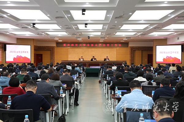 会议首先开展了警示教育,全体参会干部观看了警示教育片后,校纪委书记肖应红代表学校党委作全面从严治党工作报告。他从抓政治建设、开展庆祝中国共产党成立一百周年系列活动、开展党史学习教育、抓疫情常态化防控、抓意识形态工作、抓干部队伍建设、抓作风建设、抓巡察工作、抓日常教育监督等方面,对2021年全面从严治党工作进行了简要回顾,总结了过去工作中取得的成绩,对目前学校在全面从严治党工作中存在的问题进行了深入的分析,对2022年全面从严治党重点任务进行了部署:一是强化政治引领,坚决做到“两个维护”;二是夯实基层基础,深化组织建设;三是守牢安全底线,维护稳定大局;四是压实责任转作风,始终贯彻严的主基调;五是强化权力制约,紧盯关键领域抓监管。
