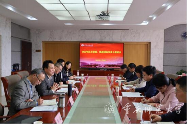 会上,统战部部长刘军主持会议,并传达了2022年全市统战部部长会议精神,总结了2021年全校统一战线工作开展情况,就2022年学校统一战线工作进行了布置。他指出,2022年重师统一战线工作将以迎接中共二十大召开为主线,进一步加强党外知识分子的思想政治引领,巩固共同思想基础,凝聚最大正能量、画出最大同心圆,广泛凝聚共识、汇聚人心、广聚力量,不断提升建言献策和咨政高度、拓宽学习调研和服务社会广度、拓展理论与实践创新研究深度,以更高标准、更严要求、更实作风,在校内围绕学校第三次党代会目标和“十四五”规划,推动学校内涵式、高质量发展,在校外积极参政议政、履职建言,贡献重师智慧,传递重师统战好声音。