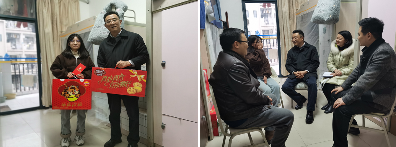 在走访慰问学生过程中,校领导代表学校首先表达了对同学们的新春祝福,详细了解学生留校原因、假期学习生活安排,勉励同学们合理规划、勤奋学习、积极实践,度过一个平安、欢乐、充实的新春假期。同学们也纷纷向校领导汇报了寒假期间在校学习生活安排,表示一定珍惜假期时光,不辜负学校老师的关心和嘱托。在检查慰问值班职工过程中,校领导在表达新春祝福的同时也向他们坚守一线岗位表达了亲切慰问与关怀,同时强调要安排好后勤保障,做好值班值守,严格落实疫情防控各项举措,确保校园欢乐祥和。