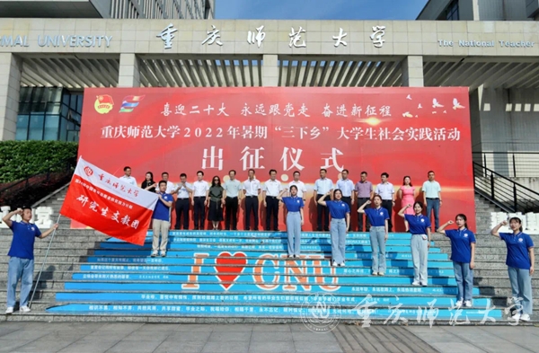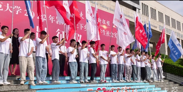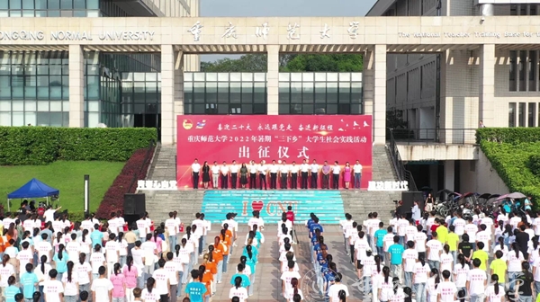 习近平总书记在庆祝中国共产主义青年团成立100周年大会上的重要讲话精神,引导广大青年在社会实践中“受教育、长才干、作贡献”,培育青年社会责任感、创新精神和实践能力。6月30日,“喜迎二十大 永远跟党走 奋进新征程”Beat365官方网站2022年暑期“三下乡”大学生社会实践活动出征仪式在图书馆广场顺利举行。