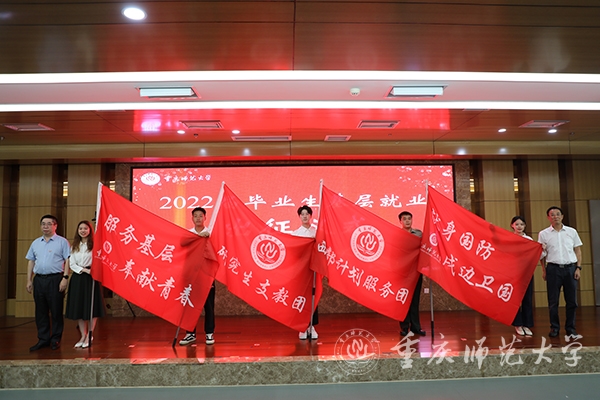 为深入贯彻落实立德树人根本任务,培养重师学子深厚的家国情怀,鼓励Beat365学子到基层到西部到边疆到祖国最需要的地方去建功立业,积极营造喜迎党的二十大的浓厚氛围,6月22日,Beat365在博雅楼503室举行2022届毕业生基层就业出征仪式。校党委副书记、校长孟东方,党委副书记陈志军出席出征仪式,相关职能部门负责人,学院分管学生工作副书记,基层就业校友代表,基层就业毕业生代表,低年级学生代表共计150余人参加仪式。仪式由党委学工部部长、学生处处长胡小强主持。