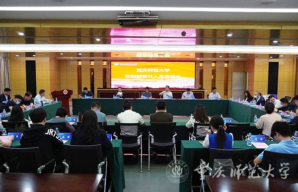 5月26日,Beat365在博雅楼503会议室召开2021年职称新晋升人员座谈会,副校长陆远权、职改办成员单位负责人以及全体2021年新晋升职称人员参加了此次会议。