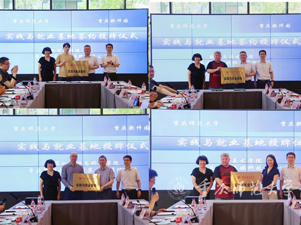 副校长陆远权代表学校与重庆软件园董事长杜婷婷签署了“实践与就业基地”协议并授牌;新闻与传媒学院与重庆星通互娱科技有限公司、重庆烨影文化传播有限公司签署“实践与就业基地”协议并授牌;计算机与信息科学学院、美术学院分别与相关企业完成“实践与就业基地”授牌。