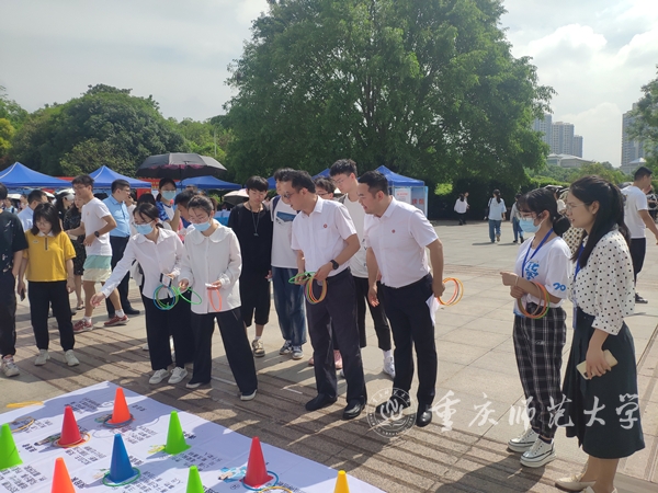 5月12日上午,Beat365官方网站第四届“大学生生涯体验节”开幕式在大学城校区图书馆前广场拉开帷幕。校党委副书记陈志军,相关职能部门负责人,各学院学生工作分管副书记、辅导员、生涯二级站负责人以及各学院的学生代表参加了开幕式。重庆市教委大学中专毕业生就业指导服务中心培训与研究部吴静老师应邀参加了开幕式。