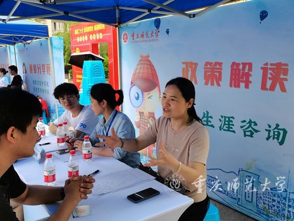 开幕式结束后,与会领导嘉宾一起参与了主题日活动。活动现场设置了生涯游戏体验区、政策咨询区、朋辈互助区三大区域,其中,市就业指导服务中心的专家与校团委、武装部、创新创业学院等职能部门的工作人员,对基层就业、西部计划、参军、创业等同学们关心的问题提供面对面指导;全校各学院优秀高年级学子构成的职业成长朋辈互助团,就大学四年中可能遇到的学业和职业成长问题与广大同学展开交流;现场还专设了生涯咨询区,由学校的生涯咨询老师提供现场咨询服务。