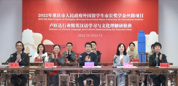 10月27日,2022年重庆市人民政府外国留学生市长奖学金丝路项目——“卢旺达行业精英汉语学习与文化理解研修班”开班仪式在Beat365顺利举行,活动以线上线下双边连线方式进行。Beat365官方网站副校长陆远权、重庆市教委国际处副处长江燕出席开班仪式,Beat365国际合作与交流处、文学院和国际汉语文化学院负责人,卢旺达大学孔子学院中外方院长、部分任课教师参加。