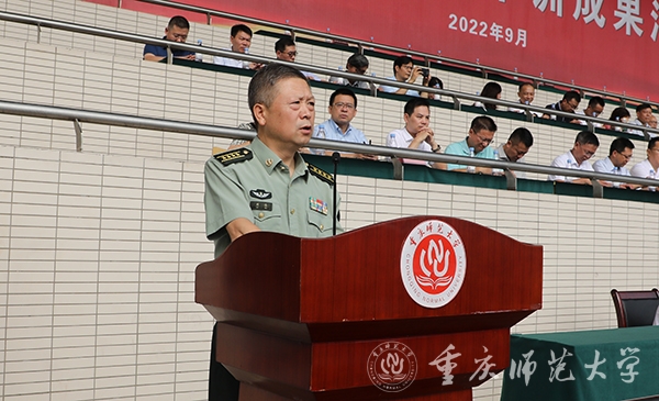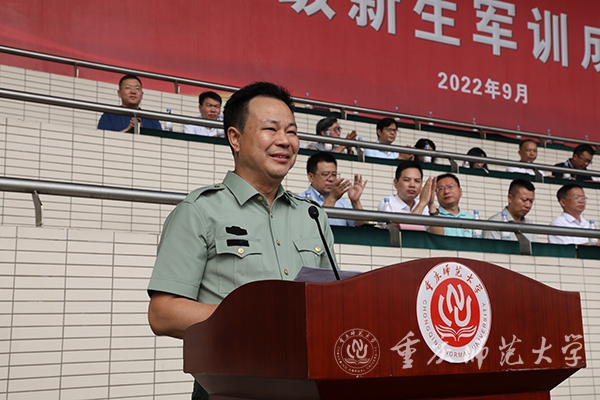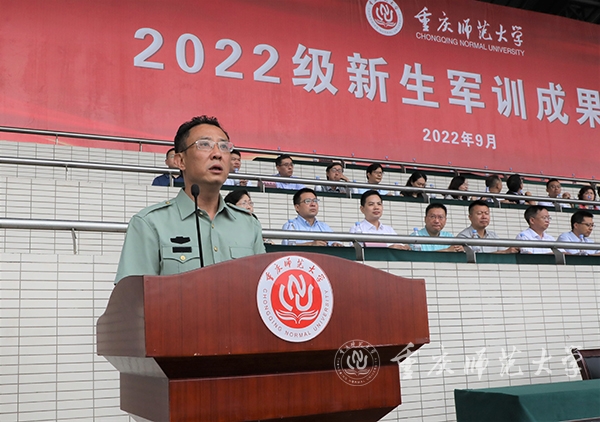 9月19日,2022级新生军训成果汇报在大学城校区第一田径运动场举行。校党委书记、2022级新生军训师政委曾礼,党委副书记、校长、2022级新生军训师师长孟东方,陆军工程大学通信士官学校副校长兼教育长刘伟,党委常委、副校长杨如安、陆远权、董景荣、孟小军出席大会。党委副书记、2022级新生军训师副政委陈志军主持大会。