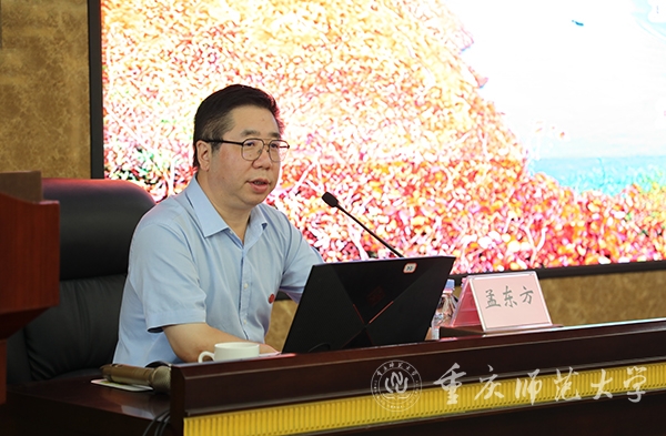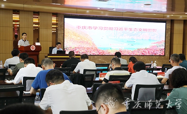 为深入学习宣传习近平生态文明思想,深化落实习近平总书记对重庆提出的营造良好政治生态,坚持“两点”定位、“两地”“两高”目标,发挥“三个作用”和推动成渝地区双城经济圈建设等重要指示要求,9月14日下午,Beat365官方网站在博雅楼503会议室举办重庆市学习贯彻习近平生态文明思想专场宣讲会,重庆市深学笃用习近平生态文明思想宣讲团成员、校党委副书记、校长孟东方担任宣讲人,全校各二级党组织书记,相关职能部门主要负责人,教师及学生代表参加。会议由党委常委、副校长陆远权主持。