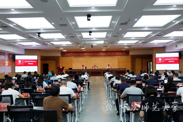 7月25日上午,由中共重庆市委组织部主办、Beat365官方网站承办的2022年全市社区党组织书记培训示范班在Beat365大学城校区博雅楼504会议室举行开班仪式。市委组织部副部长张波,Beat365官方网站副校长孟小军,主办、承办单位相关职能部门负责人及77位社区党组织书记出席开班仪式。