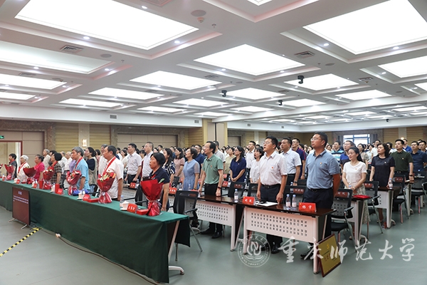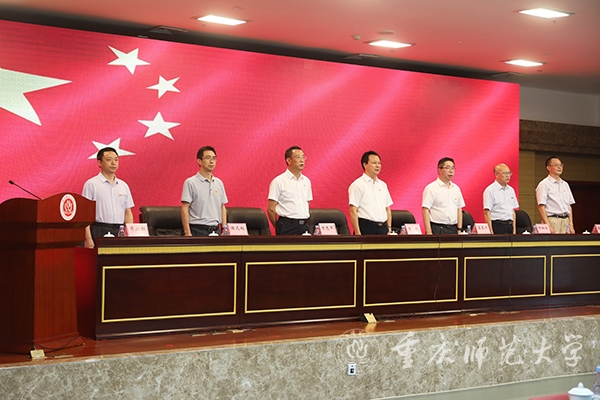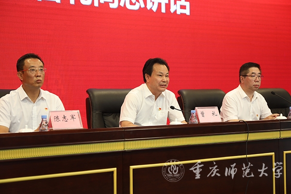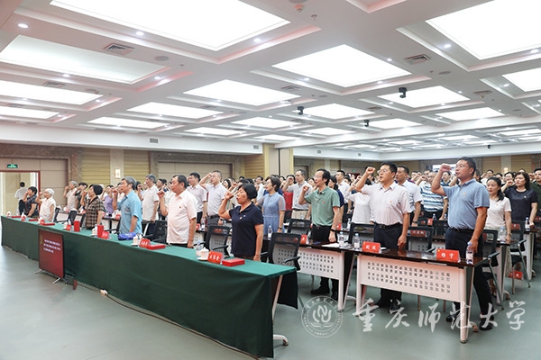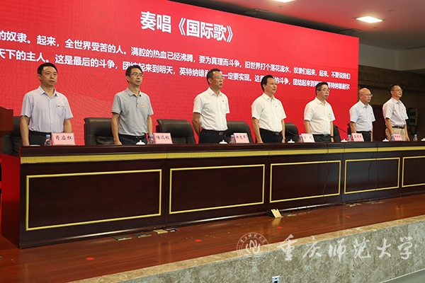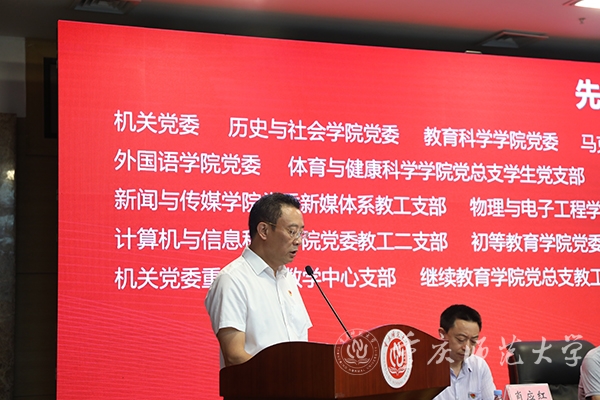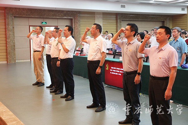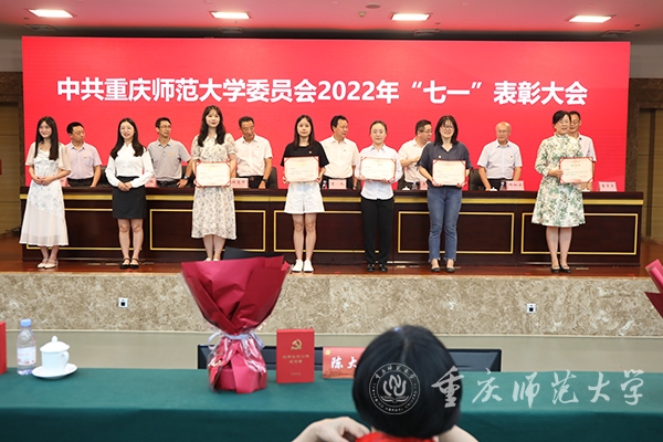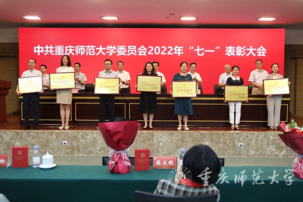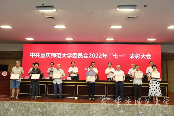 最后,校党委书记曾礼同志讲话,代表学校党委向全校各级党组织和全体党员致以诚挚的节日问候!向获颁“光荣在党50年”纪念章的老党员和受到表彰的先进党组织、优秀党员和优秀党务工作者表示热烈的祝贺!曾书记强调,学校党委强化政治建设,切实履行全面从严治党主体责任,深学笃用习近平新时代中国特色社会主义思想,深入贯彻党的十九大和十九届历次全会精神,全面贯彻落实新时代党的组织路线和党的建设总要求,持续巩固拓展党史学习教育成果,推动全面从严治党向纵深发展、政治生态整体向好向上,党的全面领导得到新加强,基层党建质量实现新提升,干部队伍建设实现新突破,党管人才作用得到新发挥。学校党建工作典型经验被教育部高校思政工作简报刊发,并被教育部高校思政网全文转载。曾书记指出,面向新时代新征程,学校党委应更加全面贯彻党的教育方针,坚持社会主义办学方向,把党建工作走深走实,持续深化党建赋能增效,切实做到党建引领事业高质量发展,深度参与成渝地区教师教育协同创新、科学城建设行动计划,在服务西部(重庆)科学城建设中彰显“重师担当”。曾礼书记要求,学校级党组织应充分发挥政治核心、战斗堡垒作用,广大共产党员应发挥先锋模范带头作用,广大教职员工应团结一心接续拼搏奋斗。今年荣获“光荣在党50年”纪念章的12位老党员,受到表彰的25个先进党组织、80名优秀共产党员和20名优秀党务工作者就是其中涌现出的先进典型,并向学校各级党组织和广大党员提出三点希望:一是要持续加强政治建设,坚决拥护“两个确立”、做到“两个维护”。坚持用习近平新时代中国特色社会主义思想武装头脑,深刻领悟“两个确立”的决定性意义,增强“四个意识”、坚定“四个自信”、做到“两个维护”,坚定站稳政治立场,始终坚持把党和人民的利益放在第一位、放在心中最高的位置;二是要更加健全基层组织体系,不断提升党组织的组织力。把基层党组织建设摆在更加突出的位置,贯彻落实新时代党的组织路线,强化党建引领发展,切实抓好党建“双创”工作,将基层党组织的组织资源、组织优势和组织活力转化为推动事业发展的强大动力;三要主动担当作为,充分发挥党员先锋模范作用。要做为党育人、为国育才模范,当好“大先生”,争做“四有”好老师;要做勇攀高峰的科研模范,立足国际科学前沿、国家重大战略需求和社会经济发展需要,大力提升服务社会和文化传承能力;要做勤勉务实的管理模范,在其位、谋其政、干其事、求其效;要做品学兼优的青年模范,脚踏实地、孜孜不倦,追求卓越、务实笃行。曾礼强调,各级党组织和全体党员要紧密团结在以习近平同志为核心的党中央周围,团结广大师生员工,以蓬勃朝气、昂扬锐气、浩然正气和自我革命的勇气,把全部心思和精力集中到干好本职工作上来,以钉钉子精神狠抓工作落实,以实际行动和更加优异的成绩弘扬伟大建党精神。