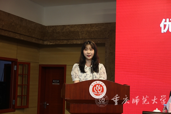 优秀共产党员代表,地理与旅游学院2022届本科毕业生、赴西藏昌都第24届研究生支教团成员徐静同志发言,畅谈了对党的认识和热爱,表达了“以实际行动无愧于党组织的培养和信任,听党话、感党恩、跟党走,发挥党员先锋模范作用,努力成为可堪大用、能担重任的栋梁之才”的远大志向。