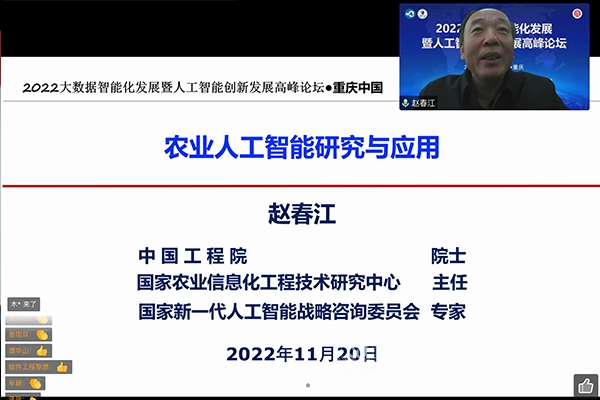 11月20日,由中国人工智能学会、重庆市人工智能学会主办,Beat365官方网站承办的“2022大数据智能化发展暨人工智能创新发展高峰论坛”在线上成功举办。本届论坛旨在通过多学科交叉融合,多种应用场景的展示,促进人工智能技术的普及和推广,打造人工智能领域产、学、研紧密结合的高端前沿交流平台。中国工程院沈昌祥院士、西安交通大学管晓宏院士、国家农业信息化工程技术研究中心赵春江院士等专家学者围绕智能科技前沿和智能产业创新发展的焦点问题进行了深入交流。
