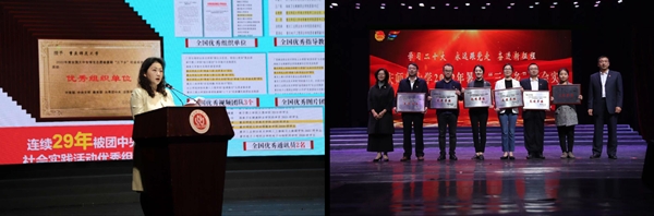 校团委书记高菁励从“实起来”“亮起来”“强起来”三个层面对本次暑期“三下乡”社会实践活动作总结汇报。相关职能部门负责人依次为先进集体和先进个人代表颁奖。