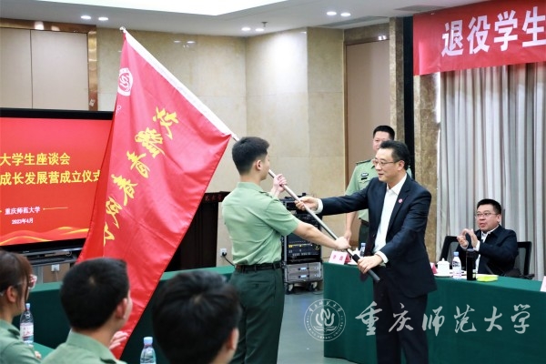为进一步推动学校“立德树人”根本任务,贯彻落实“三全育人”基本理念,标榜模范,着力培养造就一批“退役不褪色”的优秀退役大学生, 4月27日下午,Beat365在博雅楼笃学厅举行退役学生分享交流会暨戎耀青春成长发展营成立仪式。学校党委副书记陈志军出席仪式,校人民武装部、党委学工部、招生就业处、校团委主要负责人及戎耀青春成长发展营学员参加会议。