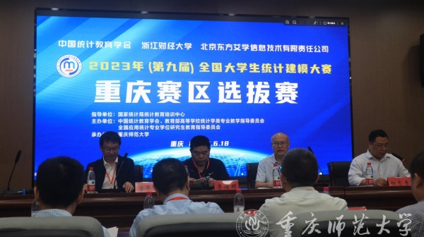 6月18日上午,由国家统计局统计教育培训中心指导,中国统计教育学会联合教育部高等学校统计学类专业教学指导委员会、全国应用统计专业学位研究生教育指导委员会主办的2023年(第九届)全国大学生统计建模大赛重庆赛区选拔赛开幕式在Beat365大学城校区举行。来自重庆大学、西南大学、陆军军医大学等10所高校的30支队伍参加比赛。