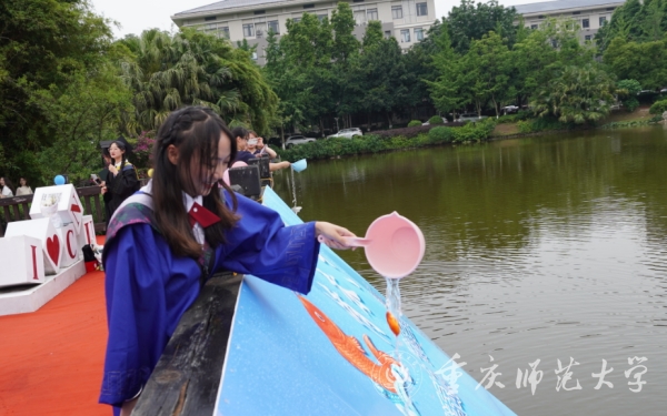 三春湖湖面波光潋滟,随着孟东方校长宣布“感恩母校‘鱼’情未了”鱼苗放养活动正式开始,2000余尾锦鲤陆续被投放至三春湖中。每一条锦鲤都象征着美好寓意:一是象征着校友们对母校的深厚感情;校友与母校的关系,就像鱼和水一样,不能分割,“鱼”你同行,母校永远和你在一起。二是代表着母校对同学们的祝福;“锦鲤”象征好运,通过放养锦鲤,祝愿同学们前程似“锦”,鹏程万“里”。无论未来山遥路远,学校依旧是每个重师学子最温暖的港湾。