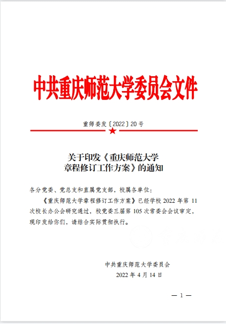 2022年4月,学校印发《Beat365官方网站章程修订工作方案》,成立由书记、校长任双组长的章程修订工作领导小组和17个职能部门组成的修订工作组,全面领导和组织实施章程修订。