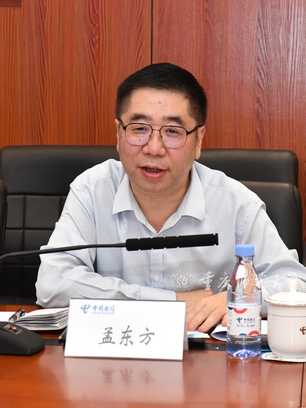 孟东方从学科发展、人才培养、开放办学、文化建设等方面介绍了学校的改革发展成效。他表示,本次走进中国电信重庆公司调研是学校贯彻落实主题教育要求,进一步提升人才培养质量、促进学生高质量就业的重要举措。学校与中国电信重庆公司共同承担着服务西部地区发展的历史使命,希望在长期合作中优势互补、协同创新、互利共赢。就深化双方合作,孟东方提出三点建议:一是始终维系重要合作伙伴关系,共同助力以教育数字化推进教育现代化。二是深化双方供需对接,促进毕业生高质量充分就业。三是通过校企合作赋能人才建设专业化、成果转化便利化和内涵发展现代化,在科学研究、成果转化等方面提供智力支持,在服务产业行业发展方面提供人才支撑,在深化人才融聚发展方面形成高校与企业资源优势良性互动。