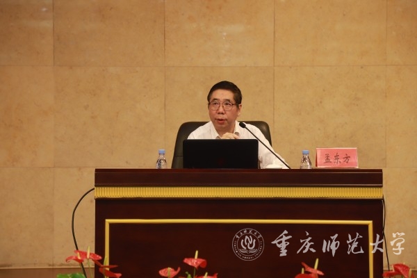 孟东方教授以近年来开学典礼和毕业典礼上的讲话寄语引入讲座,从“珍惜时光,励志成才”“‘温和的革命’下的教育理念”“我的学习观、教学观和科研观”“融入重师大家庭,共促未来大发展”四个方面分享了他的时间观、人生观、学习观和成才观。