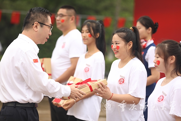 孟东方为与祖国同生日学生代表送祝福。参加活动的全体师生挥舞小国旗,以歌声深情告白祖国,活动在《我和我的祖国》《歌唱祖国》的大合唱中圆满结束。