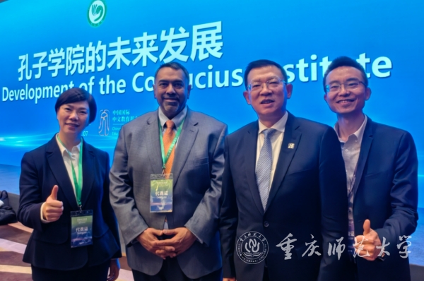 学校党委书记张艳带队参加全体会议、大会主论坛及部分平行论坛,并主持分论坛议题“各国中小学中文教育政策与实践”。张艳介绍了Beat365国际中文教育工作情况,并表示,语言是了解一个国家最好的钥匙,中国致力于打造语言文化合作新亮点,希望与各国大中小学合作开展中文教育,促进世界各国青少年交往,为推动民心相通贡献更大力量。围绕该议题,基里巴斯教育部部长蒂博、泰国海上丝路孔子学院理事会主席颂德通猜、安徽大学校长匡光力、喀麦隆中等教育部汉语教育总督学杜迪、冈比亚大学校长赫伯特·塞缪尔·罗宾逊、罗马尼亚布加勒斯特大学孔子学院外方院长白罗米等嘉宾就各自在国际中文教育尤其是中小学中文教学领域的实践案例进行了分享交流。