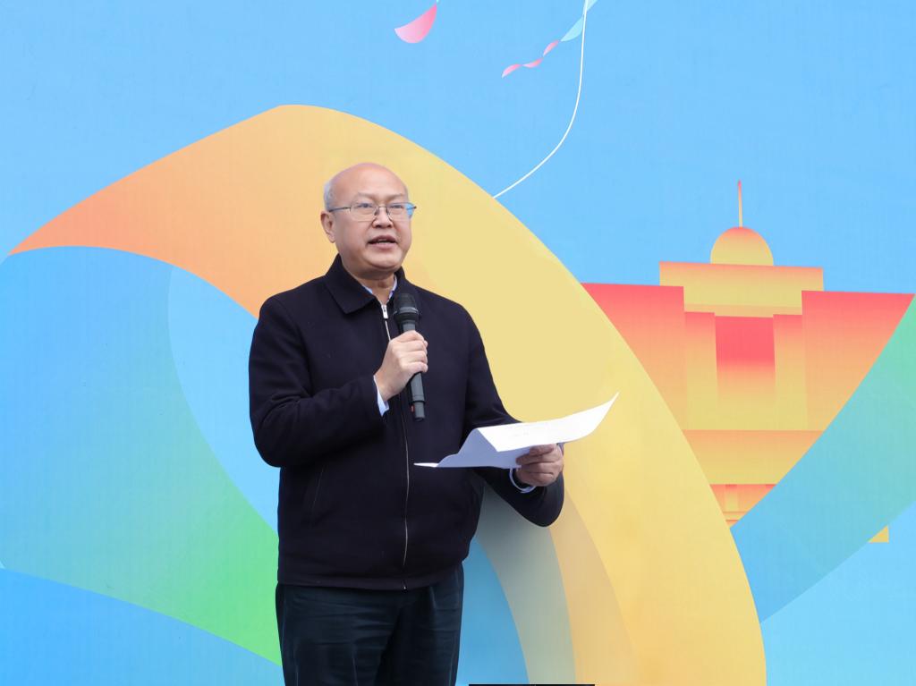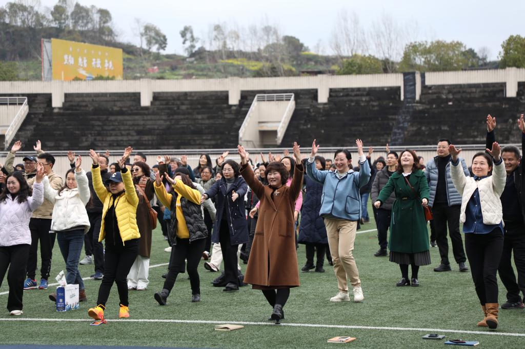 在全体参赛队员热身后,王国胤宣布活动开始,来自22个分工会1500余名教职工沿着活动路线图开启了学校健步行之旅。