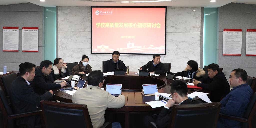 3月18日下午,学校在办公楼416会议室召开高质量发展核心指标研讨会。党委副书记、校长王国胤出席会议,党委常委、副校长孟小军主持会议。