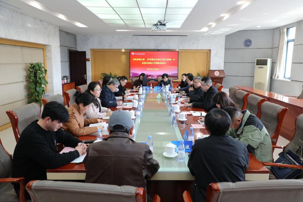 张艳代表学校党委对民革市委会一行到校调研表示欢迎,并对民革市委会一直以来对学校事业发展的关心和支持表示感谢。张艳介绍了学校发展战略和发展思路、党建和事业发展亮点、统战工作开展情况和民革重师支部的基本情况。并恳请民革重庆市委持续支持和帮助民革重师支部的建设和发展。