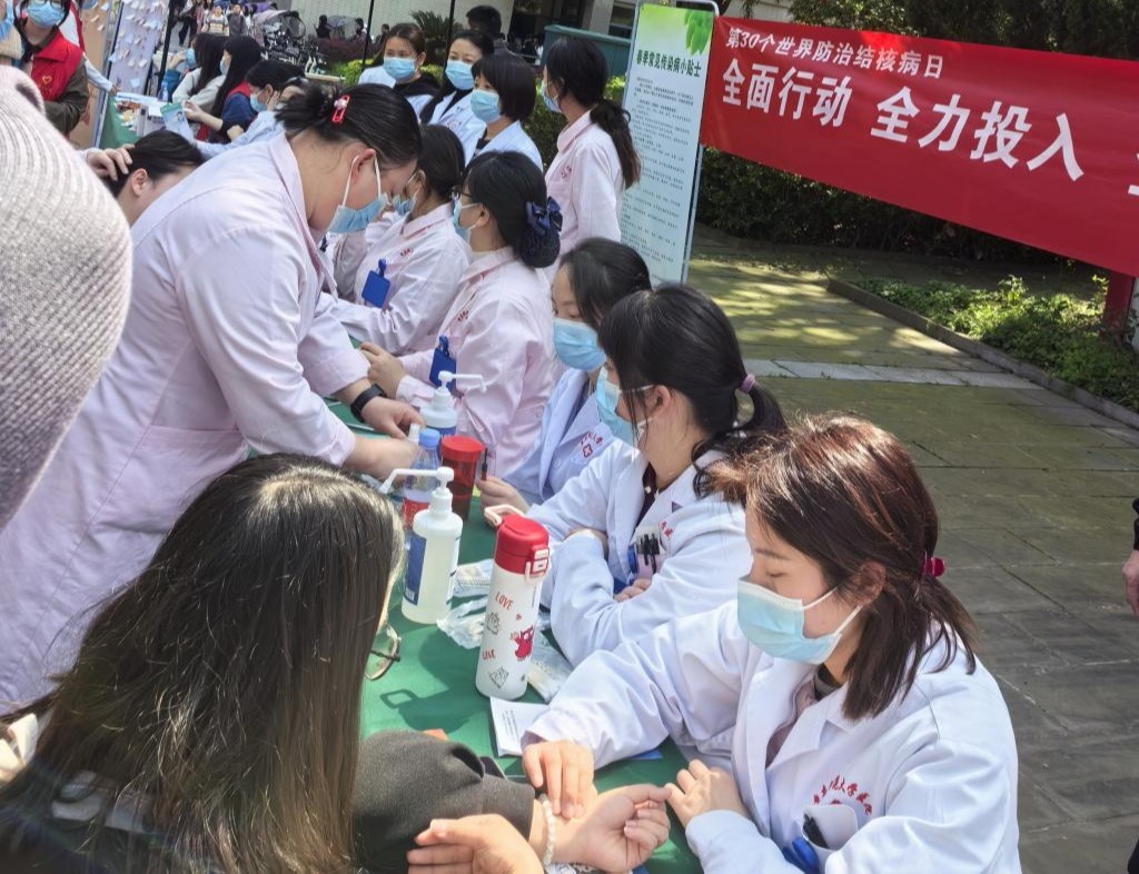 活动当日阳光明媚,前来咨询和体验的师生排起了长龙,医务人员和志愿者以多种形式向师生宣传结核病最新流行趋势、防治措施、相关免费政策等知识。现场人头攒动,气氛热烈,共收集签名倡议700余人,扫码答题300余人,义诊体验100余人,发放宣传资料400余份。