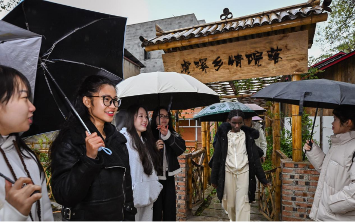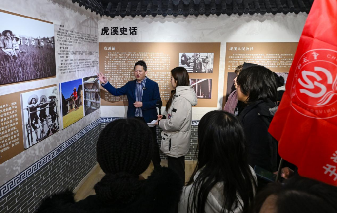 老照片定格的农耕场景、榫卯结构的传统家具、各式各样的农具,讲述着虎溪的传统历史文化,让留学生们不时驻足端详。