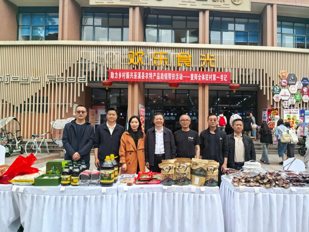 4 月 9 日,学校开展助力乡村振兴·巫溪县农特产品助销帮扶活动。学校党委常委、副校长孟小军到场,对驻村书记们近两年来在乡村振兴工作中所付出的艰辛努力给予充分认可,对他们取得的显著工作成绩给予高度肯定。