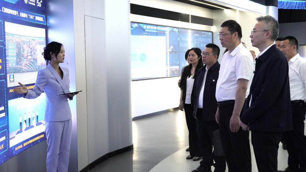 会前,在重庆移动相关领导陪同下,王国胤一行参观了重庆移动水土大数据智算中心及重庆移动1号楼展览中心。