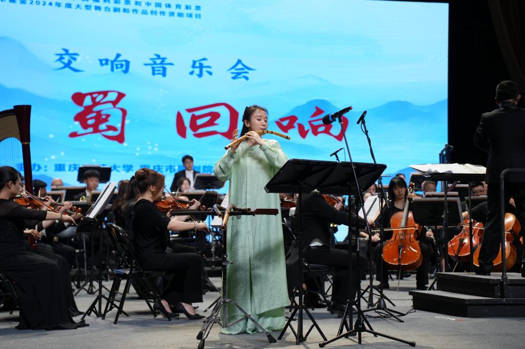 音乐会分为上下两场,由重庆交响乐团担纲演出。该团成立于2007年,与重庆市歌剧院并轨运行,以“西部一流、全国领先”为目标,致力于交响乐中国化、本土化探索,多次荣获中宣部“五个一工程”奖、中国音乐“金钟奖”等国家级殊荣。此次音乐会,乐团以原创交响组曲《巴蜀》为核心,通过《西部双星》《笛韵》等选段,以磅礴旋律勾勒巴蜀山川的壮美与人文历史的厚重。弓笛协奏曲《笛韵》巧妙融合传统民乐与西方交响,笛声婉转如溪流,弦乐恢弘似群山,展现“中国故事”的重庆表达。音乐会尾声,乐团奏响德沃夏克《e小调第九交响曲“自新大陆”》,激昂乐章传递跨越时空的艺术共鸣,现场掌声经久不息。