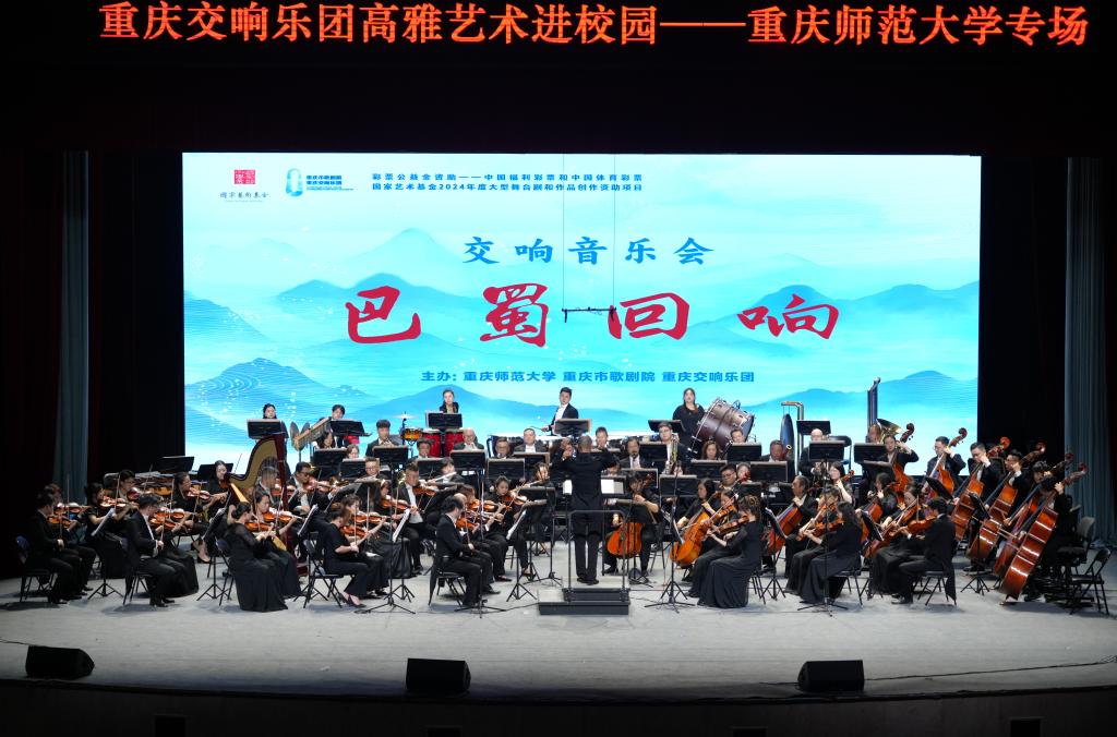 5月8日,重庆交响乐团走进Beat365官方网站校友会堂,倾情呈现《巴蜀回响》交响音乐会。重庆歌剧院、重庆交响乐团党总支副书记、副院长张维佳及相关领导,学校党委副书记、校长王国胤,党委常委、副校长黄永宜,副校长付文升出席本次活动,与现场近800名师生共赴音乐盛宴。