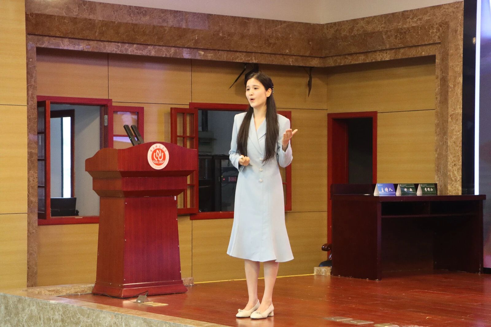 5月8日,“五四青年说 赤心照家国”主题演讲比赛决赛在博雅楼504学术报告厅开展。历史与社会学院党委副书记马小又、计算机与信息科学学院学工办主任钟华、经济与管理学院辅导员王雪薇组成评审团,2024级研究生贺雪主持。