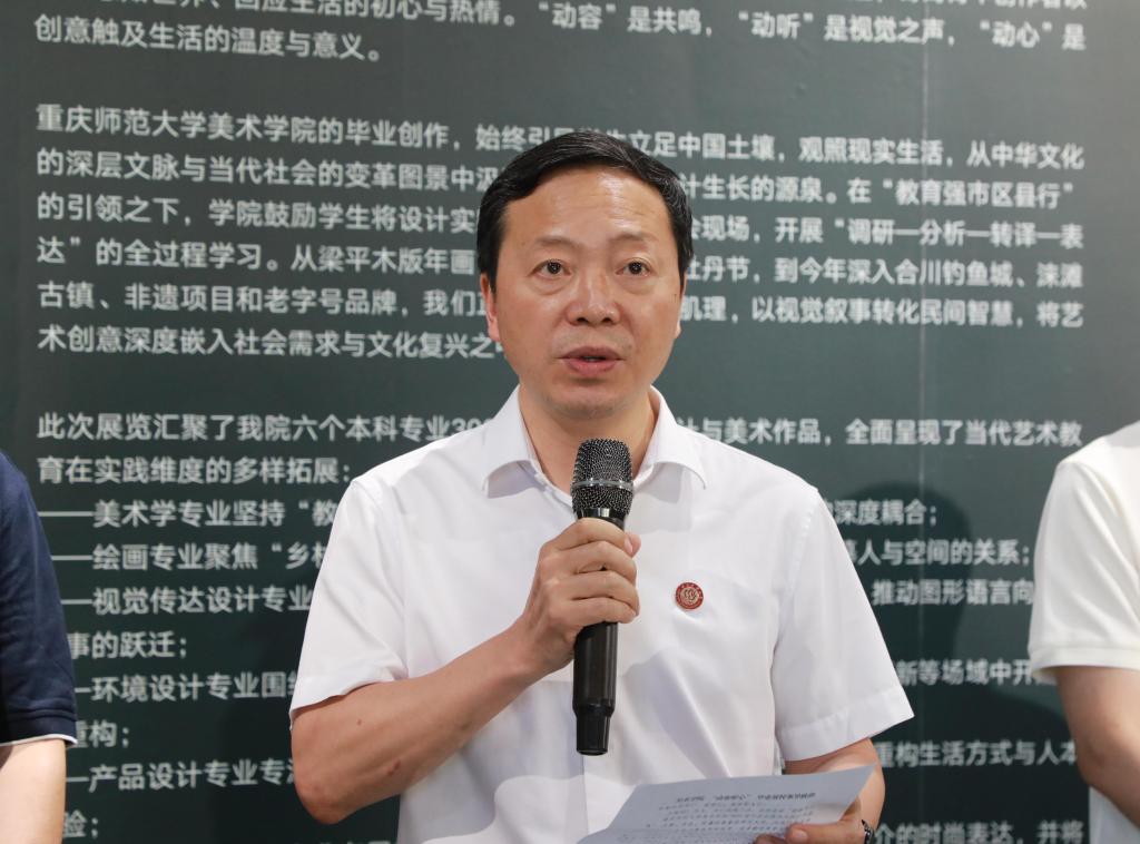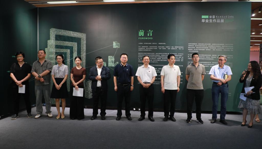 美术学院院长罗晓欢教授简要介绍了展览的整体情况,指导教师代表朱罡副教授,学生代表、视觉传达设计专业2021级仲亚宁同学现场发表感言。孟小军宣布Beat365官方网站美术学院2025届毕业作品展正式开幕。