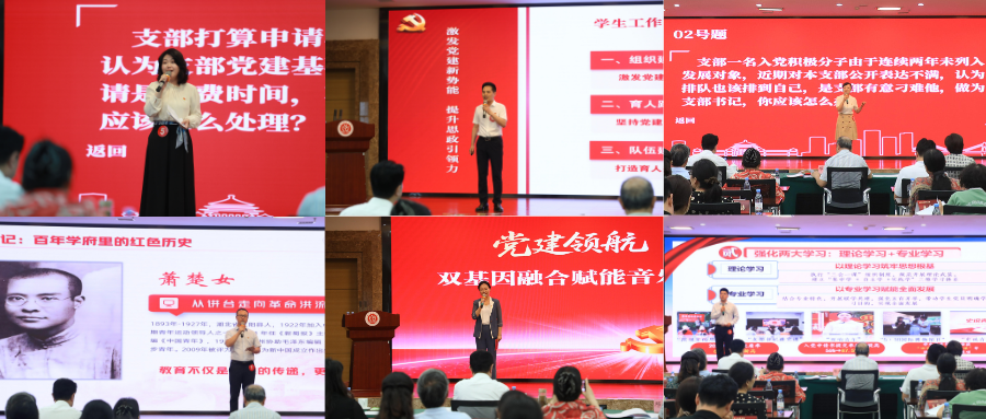 5月21日,学校2025年党支部书记基本功大赛在博雅楼504室举行,18名党支部书记参加比赛。学校党委副书记周学馨出席并讲话,各分党委书记、专职副书记、专兼职组织员、党支部书记代表现场观摩比赛。学校党委常委、组织部部长张明志主持大赛。