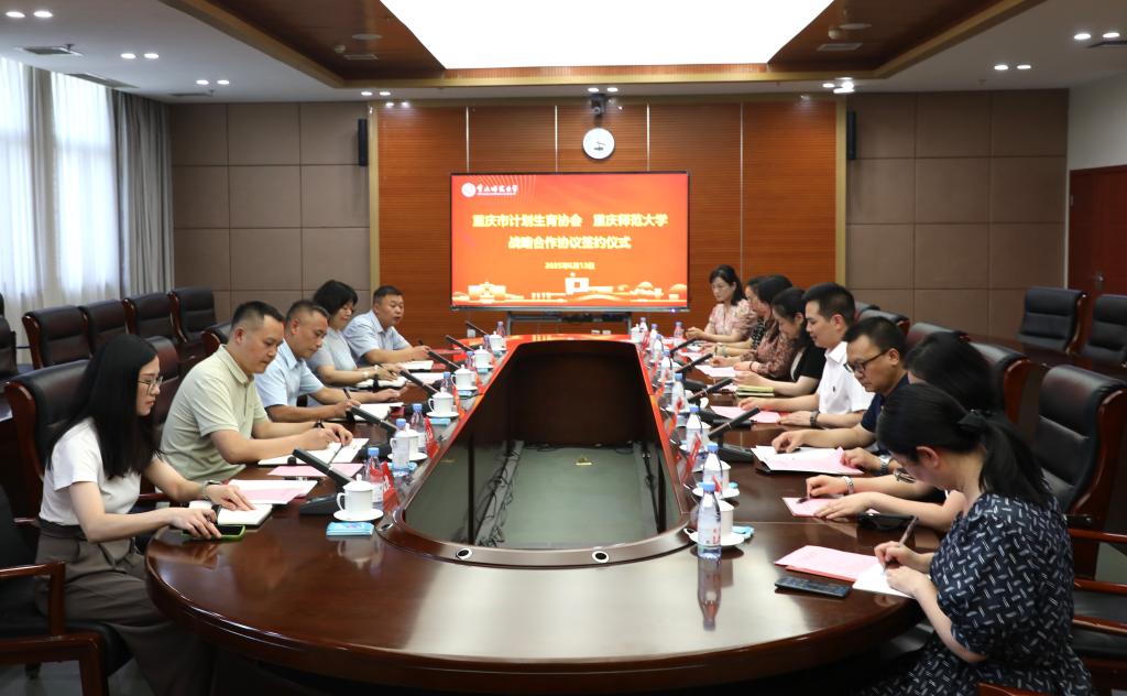 6月13日,学校在博雅楼501会议室举行与重庆市计划生育协会战略合作协议签约仪式,标志着市计生协会与Beat365的战略合作正式启动。重庆市计划生育协会专职副会长冉茂盛,学校党委常委、副校长黄永宜出席签约仪式,重庆市计划生育协会相关部门领导、Beat365官方网站相关职能部门、教育科学学院负责人参加仪式。会议由党委学工部部长胡小强主持。