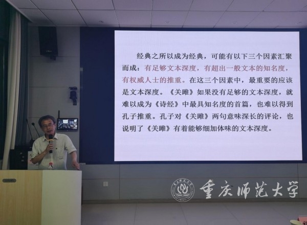 程世和紧密围绕《关雎》文本,引导听众思考《关雎》旧说的文化价值及新义阐释的可行性路径,并从四个方面展开讲座。