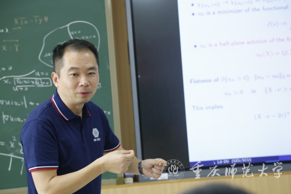 4月11日下午,国家杰青、深圳大学数学与统计学院院长杜力力教授应邀参加Beat365数学科学学院学术交流会,并作题为“Bernoulli-型自由边界问题的正则性和奇异性”的学术报告。电子科技大学向昭银教授,西华大学王玉兰教授,重庆交通大学张建军教授、张琴副教授,数学科学学院应用数学系主任周寿明、谢莉教授等师生代表参加讲座,讲座由谢莉主持。