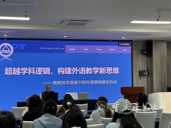 讲座围绕数智时代下外语教学的新思维、新理念、新方法展开,深入探讨了数智化语境下外语教育建设的重要性和挑战。通过解读课程建设新理念、梳理了教学研究新思路,有效地帮助了外国语学院师生探索发展新路径。