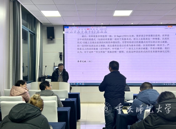 12月31日晚,文学院邀请北京语言大学文学院吴福祥教授为“精是讲堂”第53期开讲,报告题目为“动词重叠与动词小称”。讲座在汇贤楼113报告厅举行,文学院雷冬平教授主持,文学院部分师生代表参加讲座。