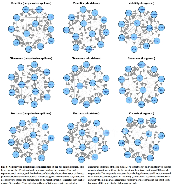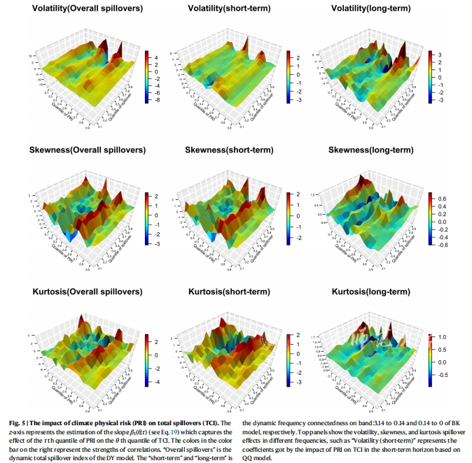 气候变化已经成为全球关注的焦点,其对碳、能源和金属市场的影响也日益显现。当前研究领域存在的主要问题是如何对气候风险的不同类型进行区分以及怎样界定其对市场间风险传递的影响。基于此,该论文使用GJRSK模型、时频溢出框架、复杂网络理论及分位数对分位数方法,剖析气候物理风险和转型风险对碳、能源和金属市场之间风险传递的不对称影响。研究发现气候风险对碳、能源和金属市场的风险传染的影响存在不对称特征,气候物理风险主要影响市场上行风险溢出,而气候转型风险则更容易影响市场下行风险的峰度连接。该研究为投资者和监管机构提供了重要的参考,同时也为分析市场间的风险传递提供了新的思路和方法。周玉琴在该论文中主要负责论文撰写以及计算高阶矩风险溢出效应,深入剖析碳、能源和金属市场高风险溢出效应。