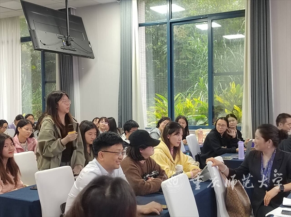 随后,与会师生围绕会议主题进行交流。谈及“型式语法和构式语法的区别”这一问题时,杨玉玲教授指出,可以从型式语法关注的内容大于构式语法,即不限于1+1>2的角度来理解这一问题。
