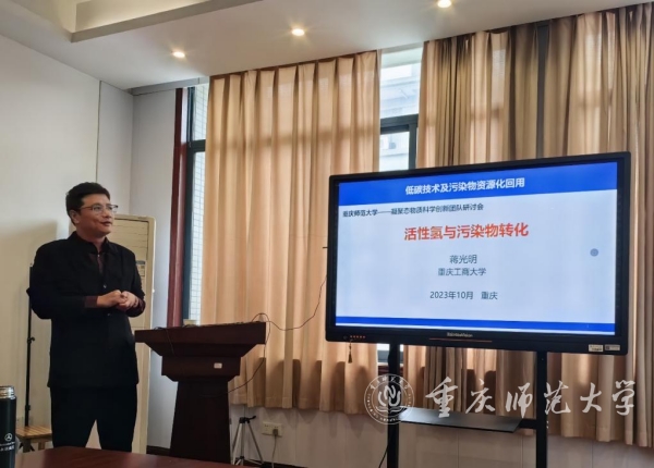 10月24日上午,应Beat365物理与电子工程学院凝聚态物质科学创新团队邀请,重庆工商大学废油资源化技术与装备教育部工程研究中心蒋光明教授到Beat365物理与电子工程学院开展学术交流,并作题为“活性氢与污染物转化”的学术报告。交流会由物理与电子工程学院副院长(主持工作)余鹏教授主持,相关课题组师生参加。