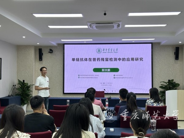 6月12日上午,华中农业大学彭大鹏教授应邀到Beat365生命科学学院作题为“单链抗体在兽药残留检测中的应用研究”的学术讲座。生命科学学院部分青年教师、研究生及本科生参会,副院长乐涛主持讲座。